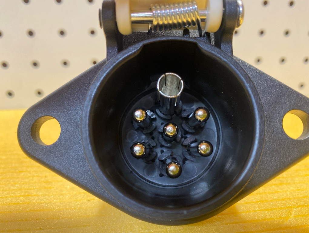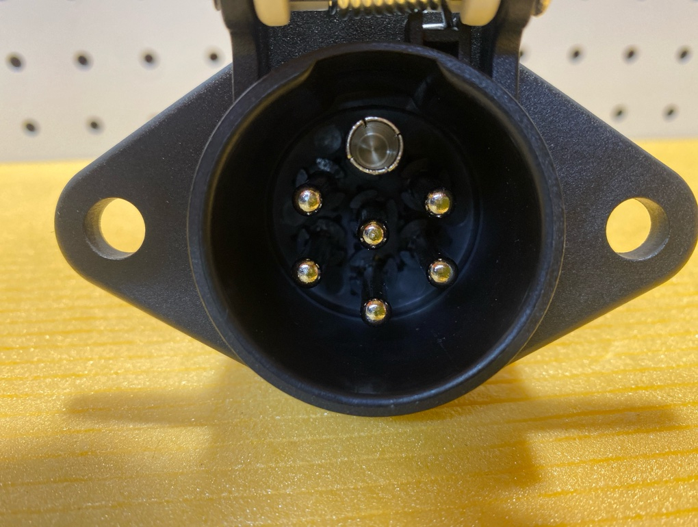 Розетка 7 полюсов, тип S, ISO 3731, пластиковый корпус, винтовой зажим в грузовых автомобилях и других транспортных средствах с напряжением 24В. Вилка изготовлена из пластика.